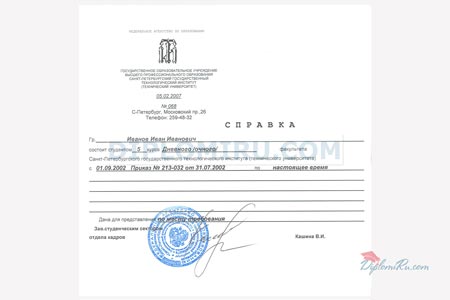 Справка об обучении в ВУЗе, техникуме, школе