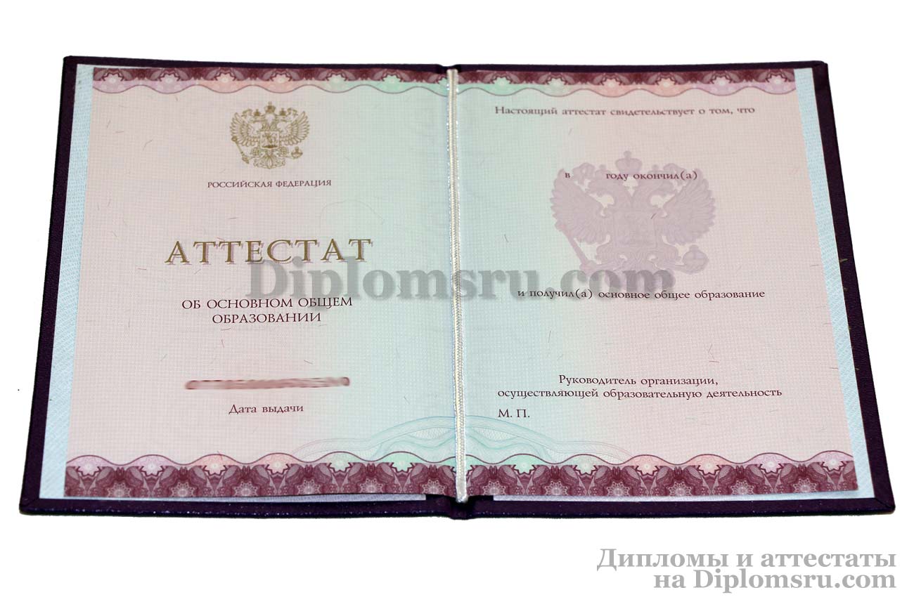 Аттестат школы за 9 класс, «Гознак» с QR кодом2021-2026 годов |